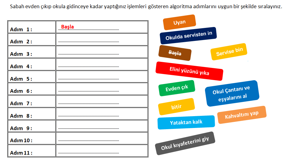 Bilgisayarı kapatma işlemi algoritma şeklinde aşağıda verilmiştir.